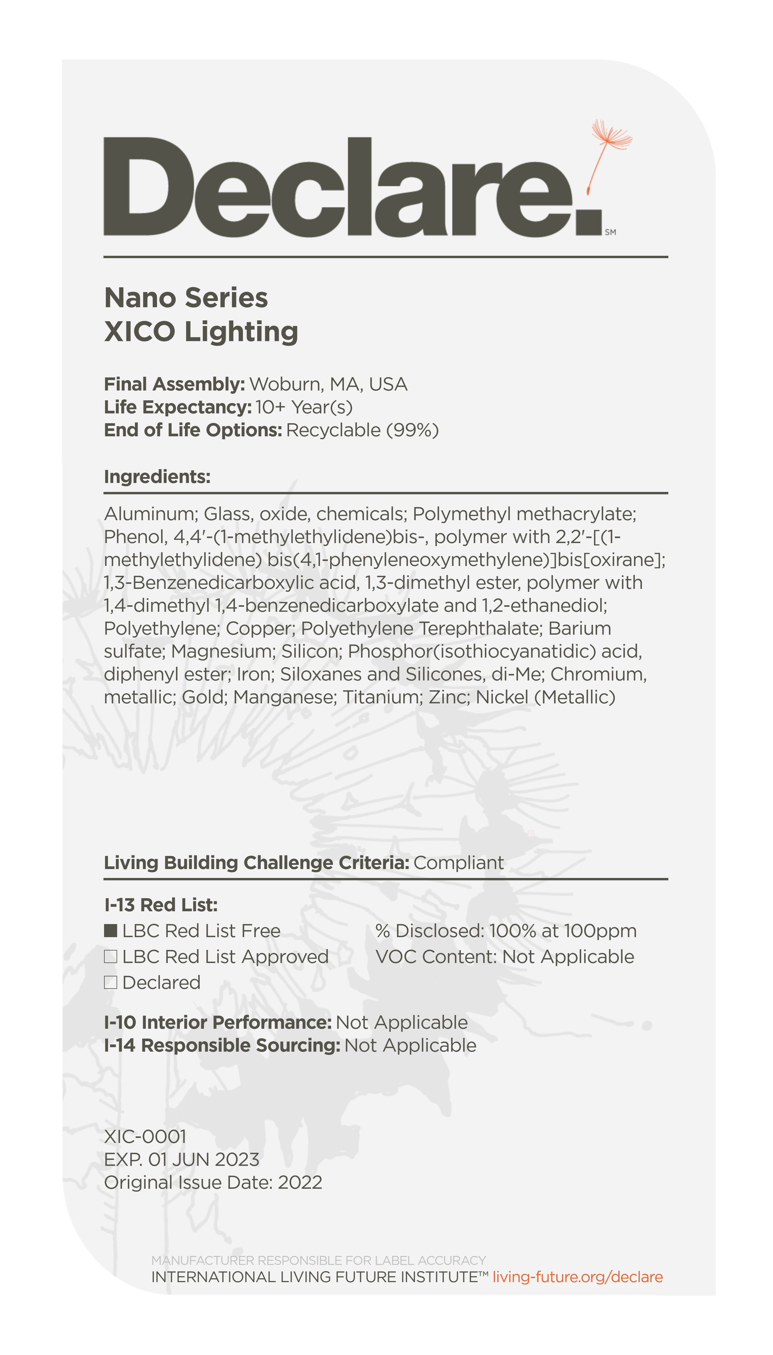 Xico Lighting is committed to material transparency.